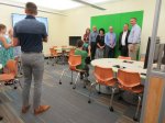 Improvements in the library include new carpet and paint. The existing shelving was left intact. New furniture in the space allows students and teachers to easily pull chairs into small groupings. Three new visual display areas allow for technology integration for classes or community meetings. The Innovation Center, a designated space within the library, will have iPad stations, a green screen and furniture pods so groups of four students can be plugged into the same visuals. “These improvements will allow teachers to use technology to create and document learning,” said Mrs. Lavin.