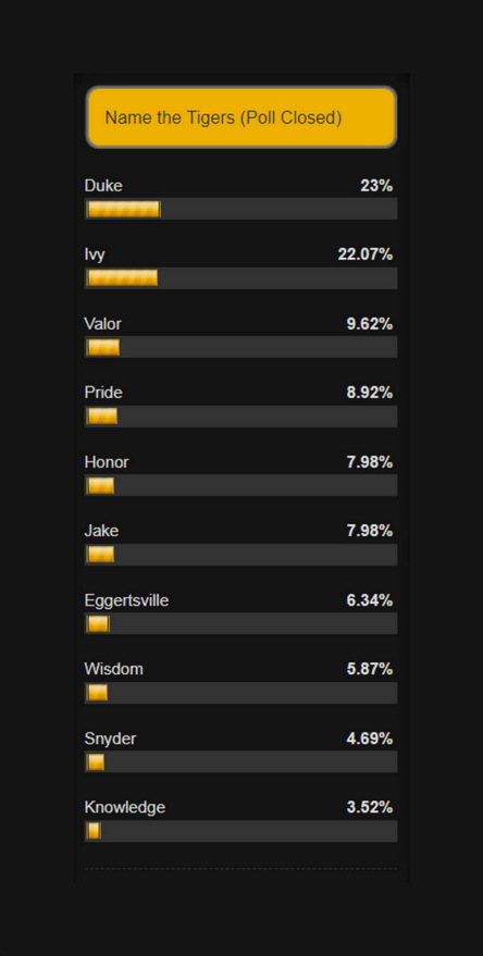 If you haven’t heard, the tigers in front of Amherst Central High School have been named after online voting. Duke and Ivy received the most votes. There will be a dedication scheduled in the coming months. Stay tuned.