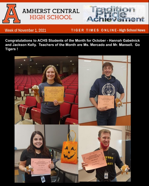 Tigers Times is the weekly school newsletter published by Amherst Central High School.