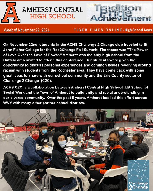 Tigers Times is the weekly school newsletter published by Amherst Central High School.