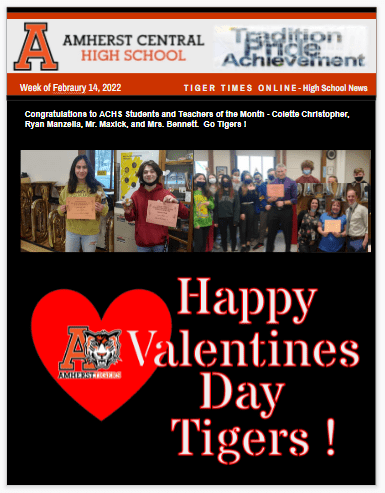 Tiger Times Online – 02/14/2022 – Amherst Central High School’s weekly digital newsletter Posted by amherstalumnioffice on 2022-02-14 Posted in: News. Tagged: Amherst Alumni, Amherst Central Alumni Foundation, Amherst Central High School. Leave a comment Click here to view the latest edition of Tiger Times—> Share this: Click to share on X (Opens in new window) X Click to share on Facebook (Opens in new window) Facebook Click to email a link to a friend (Opens in new window) Email Like Loading... Related Posts navigation ← Tiger Times Online – 02/07/2022 – Amherst Central High School’s weekly digital newsletter Wendy (Swarts) Ponder ’74 – 01/19/2022 →