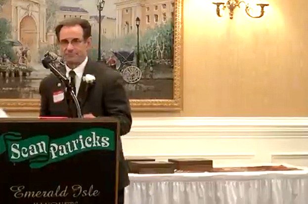 James Gallery accepting Distinguished Alumni Award on behalf of Jeremy and Margaret Jacobs