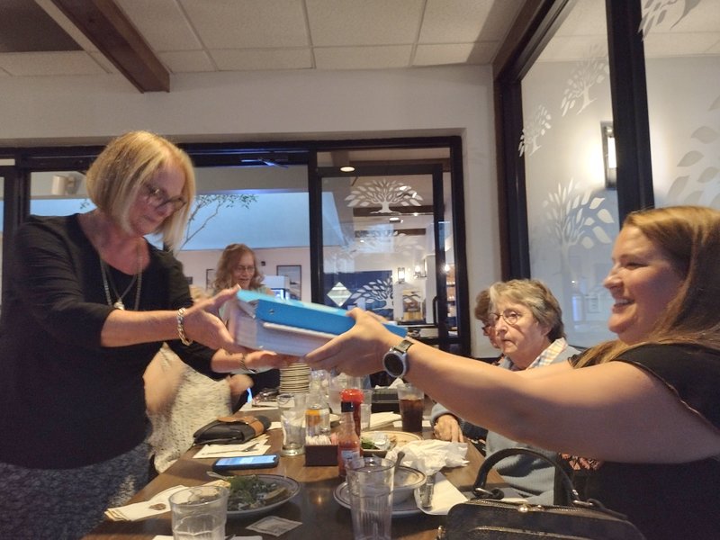 Immediate Past Secretary Nancy Graves Manalio ’70 passes the Secretary Book to new Secretary Emily Warren ’06